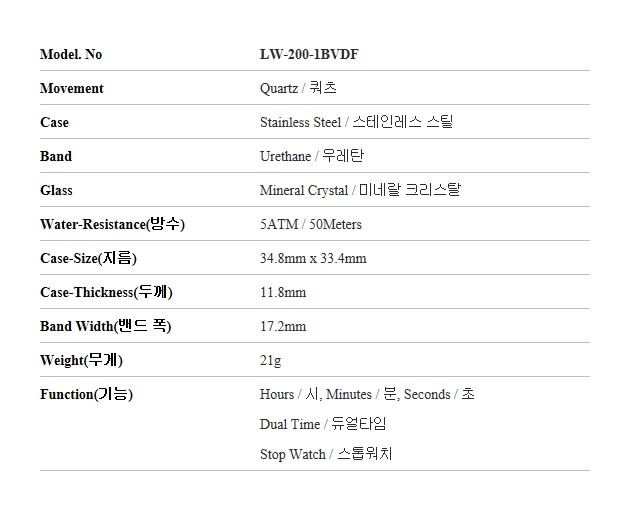 카시오 CASIO LW-200-1BVDF 여성 시계