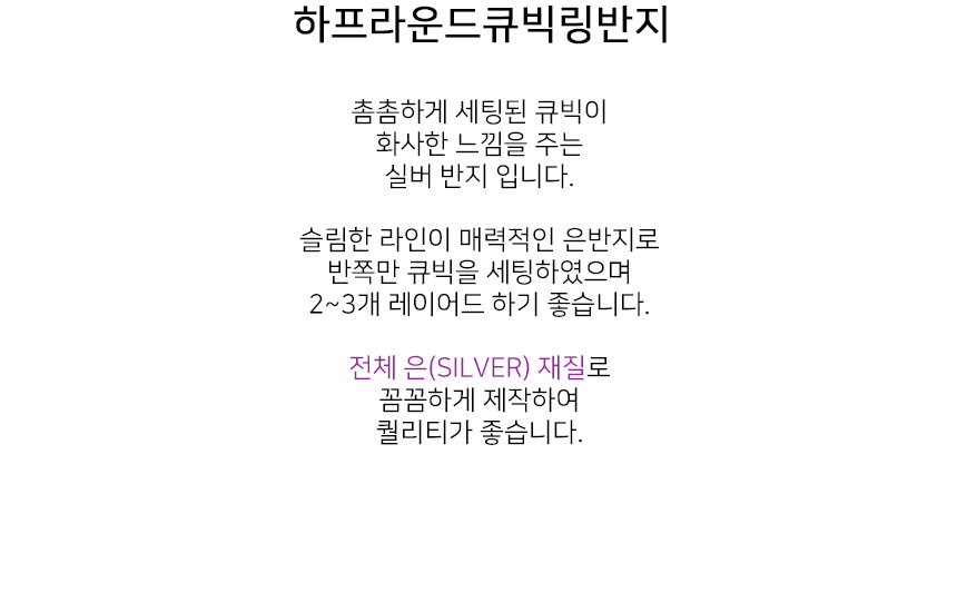 (현대Hmall)주얼레이디 925 SILVER 하프라운드큐빅링반지