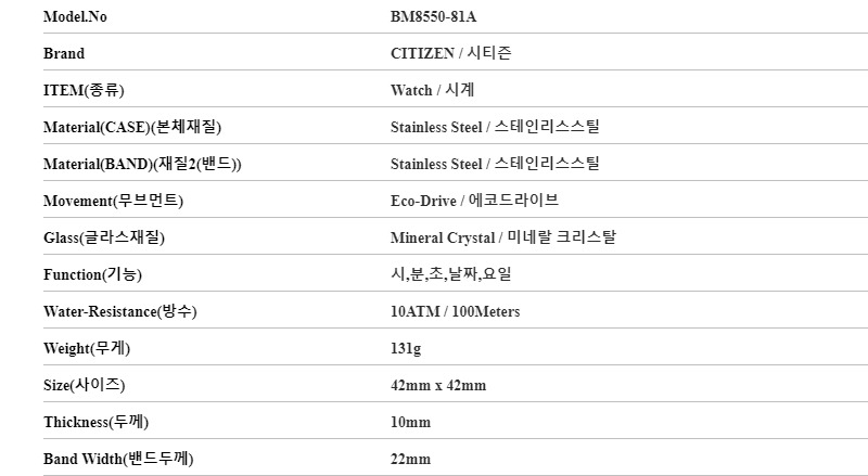 시티즌 CITIZEN BM8550-81A 남성 시계