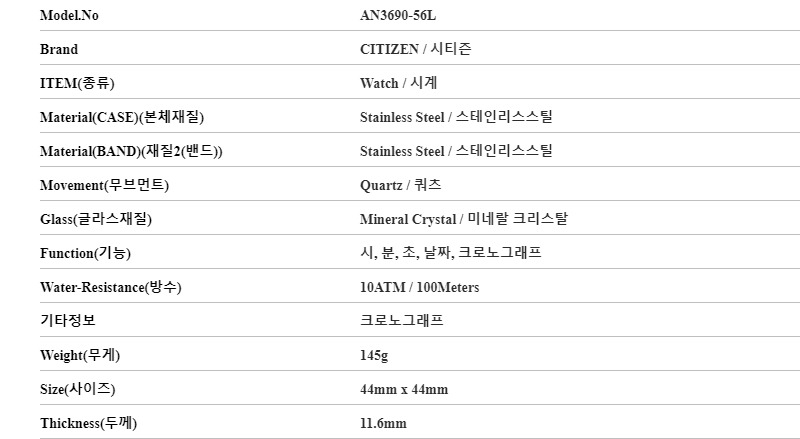 시티즌 CITIZEN AN3690-56L 남성 시계
