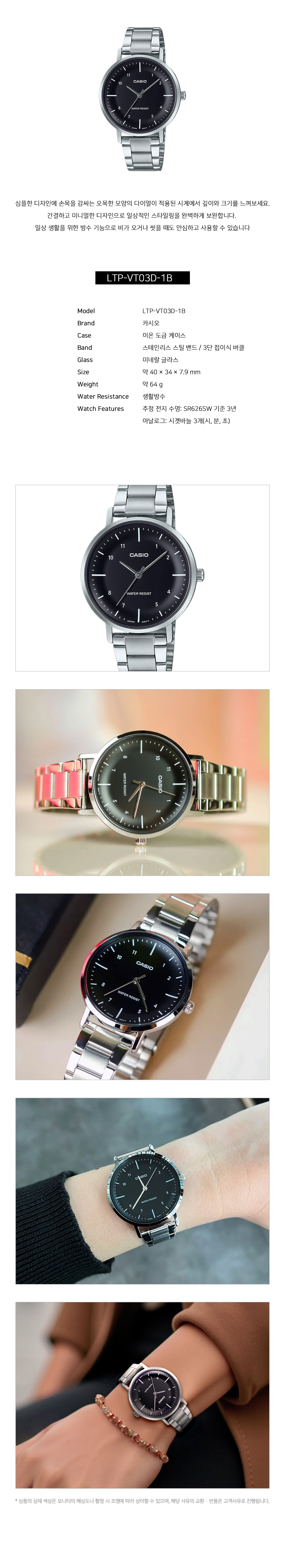 CASIO 카시오 LTP-VT03D-1B 블랙 미니멀 디자인 메탈 여성시계