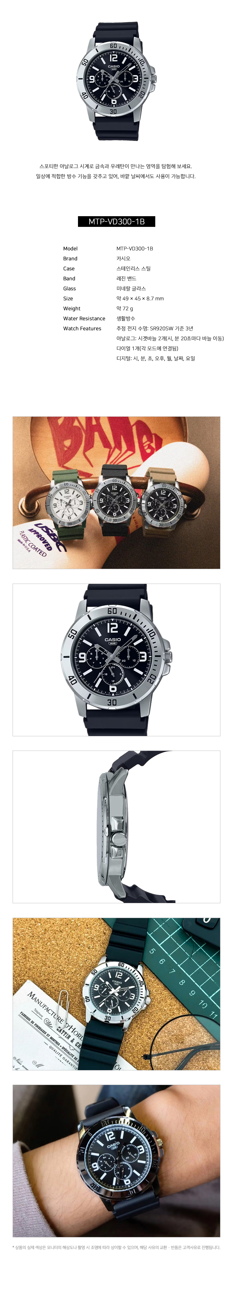CASIO 카시오 MTP-VD300-1B 스포티 빈티지 블랙 우레탄 남성시계