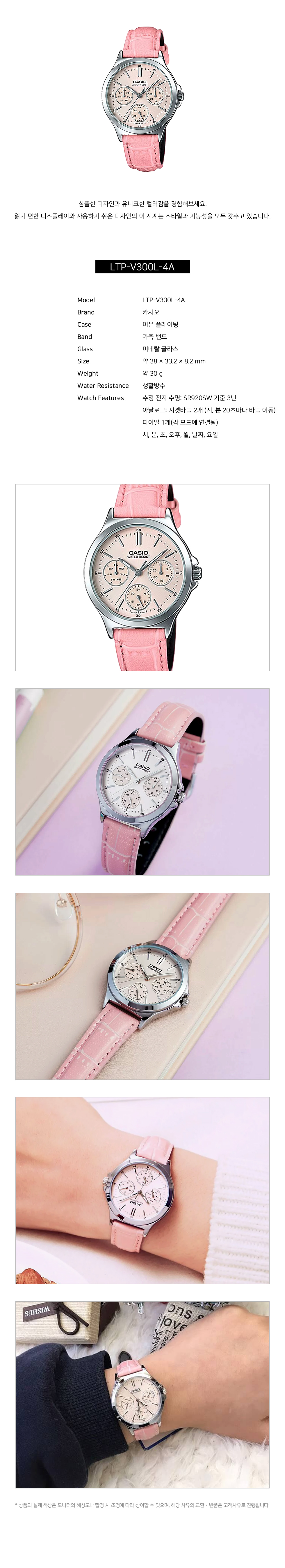 CASIO 카시오 LTP-V300L-4A 핑크 가죽밴드 클래식 여성시계