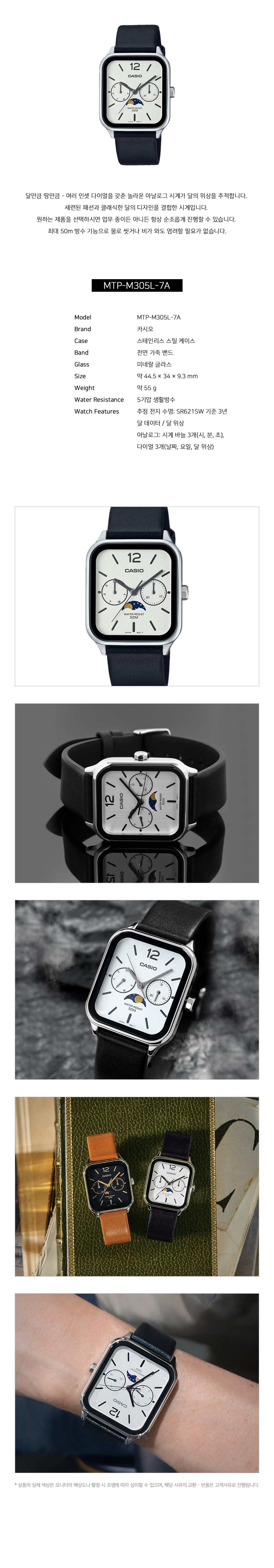 CASIO 카시오 MTP-M305L-7A 문페이즈 빈티지 화이트 가죽 남성시계