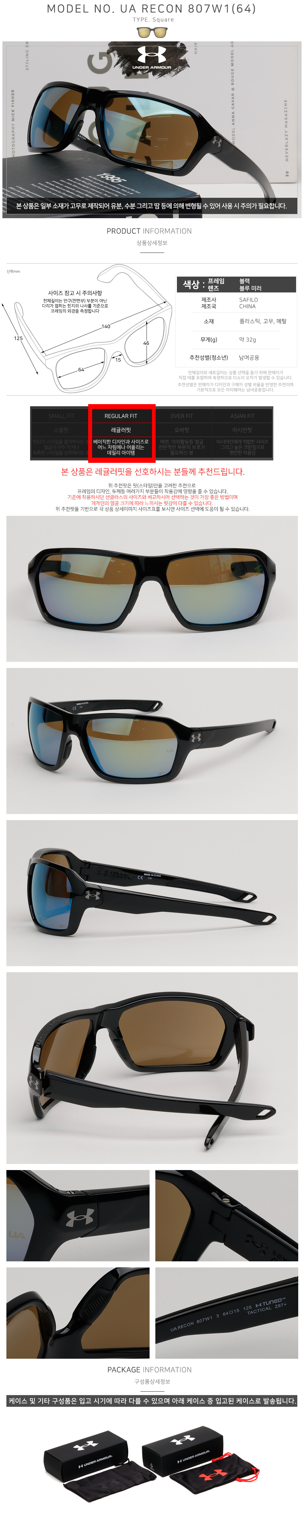 스포츠 선글라스 미러 낚시 등산 라이딩 런닝 패션 UA RECON 807W1