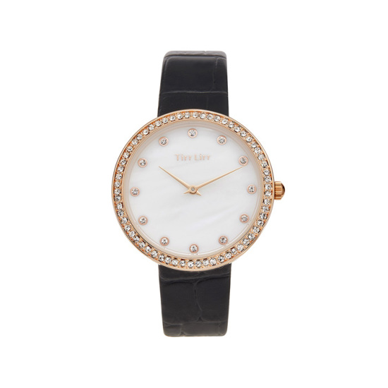 (롯데백화점)천연 자개 블랙 소가죽 시계 HWSWL0003B