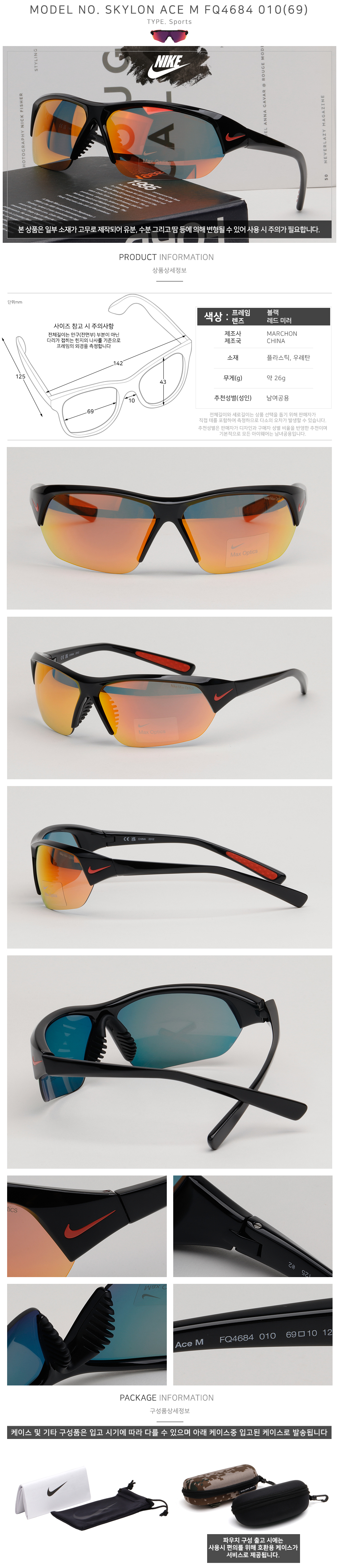 스카이론 에이스 M 스포츠 선글라스 고글 야구 골프 라이딩 FQ4684 010