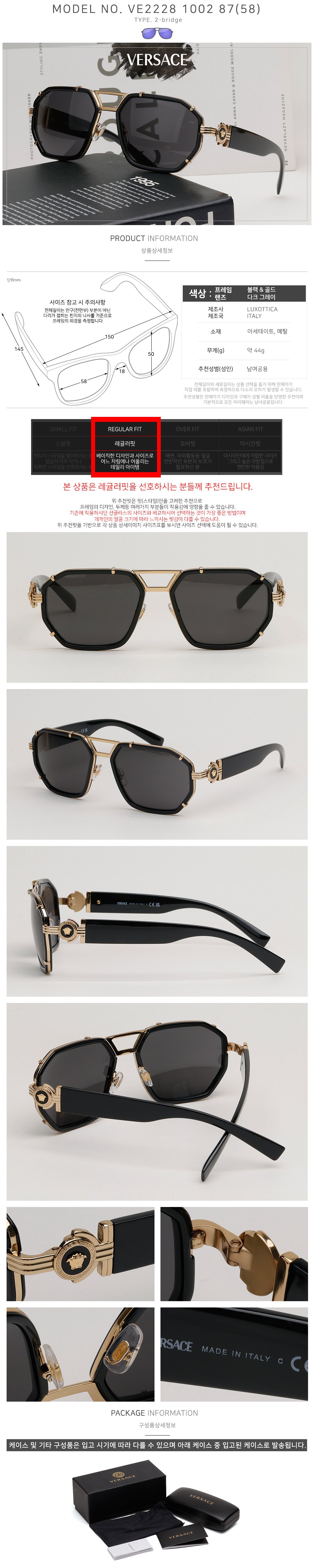 선글라스 VE2228 1002 87 명품 메두사 금장 블랙 투브릿지