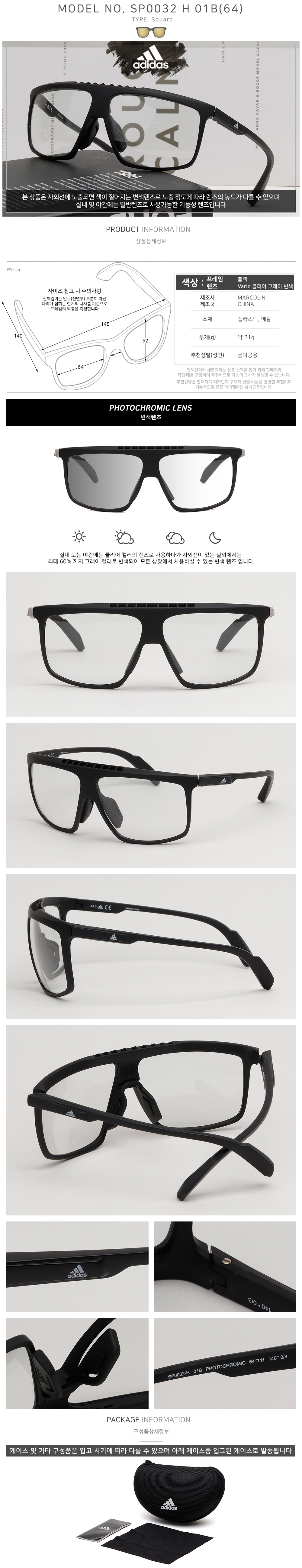 변색 스포츠 선글라스 SP0032H 01B 스포츠 고글 라이딩 사이클