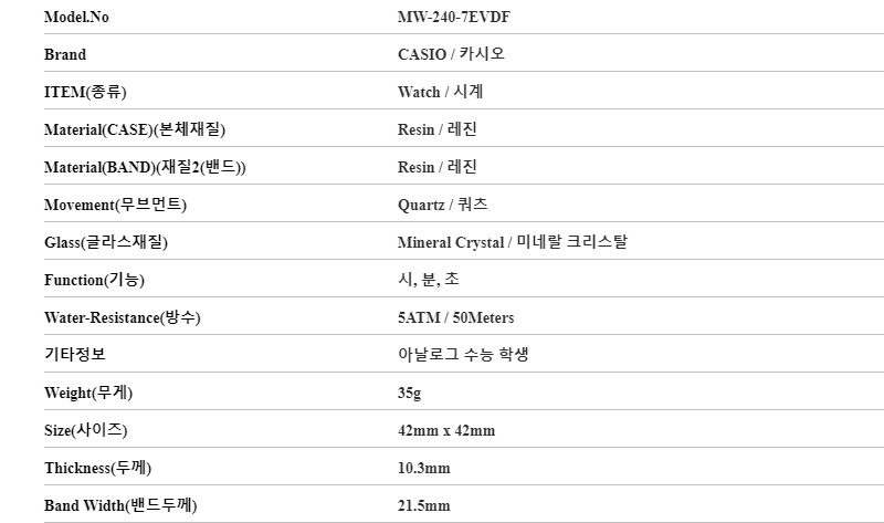 카시오 CASIO MW-240-7EVDF 남성 시계