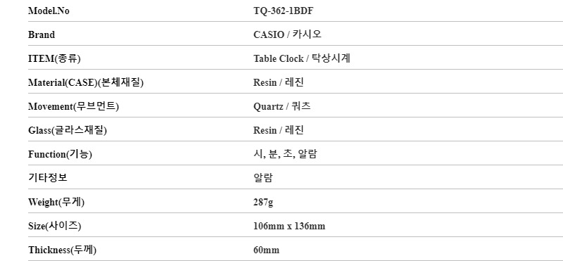 카시오 CASIO TQ-362-1BDF 공용 탁상시계