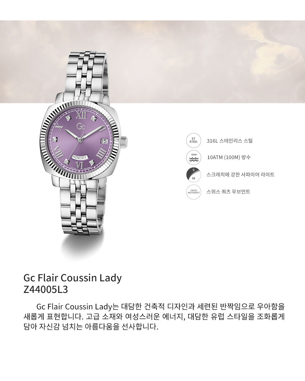 (롯데백화점)(공식) 실버 퍼플 플레어 쿠션 레이디 (Z44005L3) 여성시계