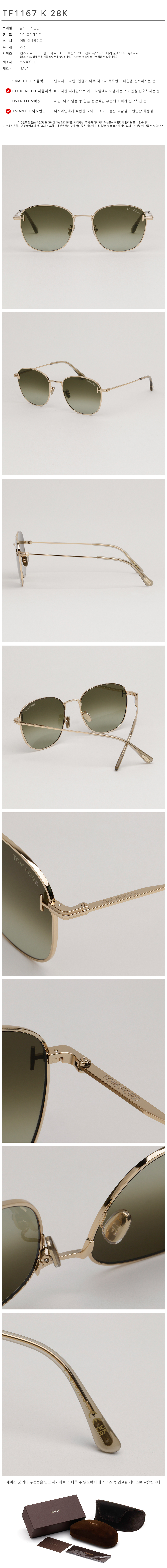 선글라스 TF1167K 28K 명품 메탈 스퀘어 금테 카키 렌즈 데일리 패션