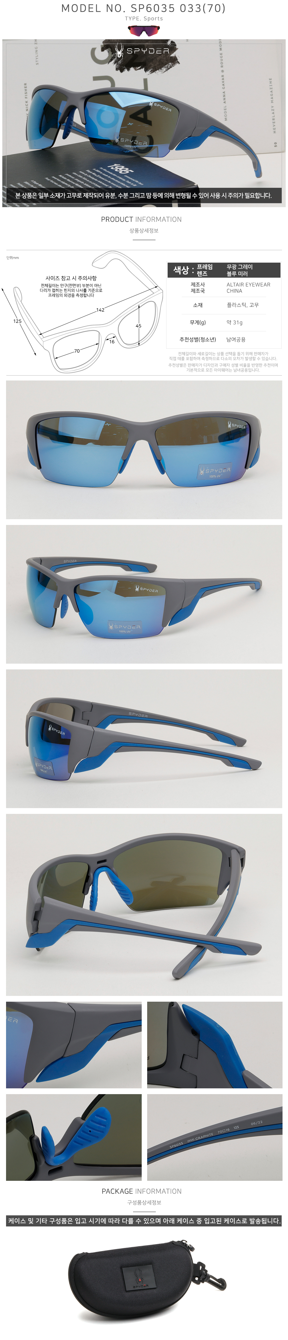 선글라스 SP6035 033 미러 블루 렌즈 라이딩 골프 러닝 스포츠 고글