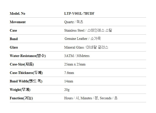 카시오 CASIO LTP-V001L-7BUDF 여성 시계