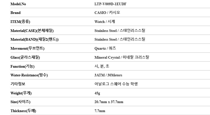 카시오 LTP-V009D-1EUDF 여성 시계