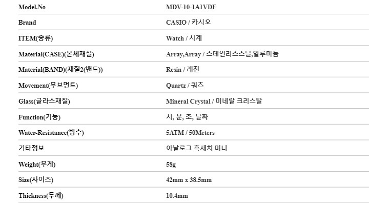 카시오 CASIO MDV-10-1A1VDF 남성 시계