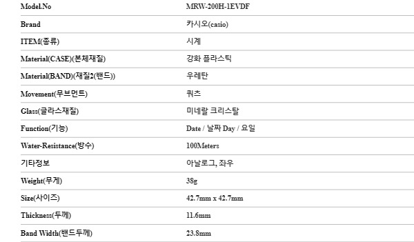 카시오 CASIO MRW-200H-1EVDF 남성 시계
