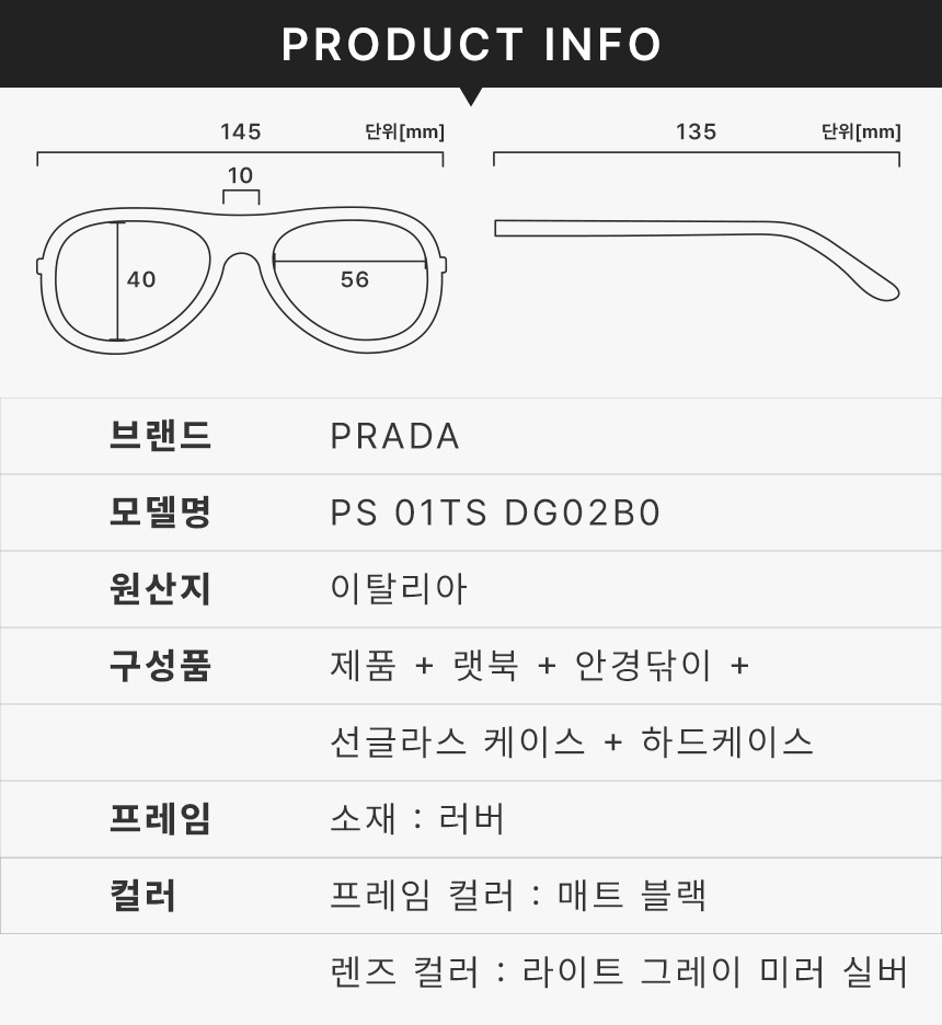 스퀘어 스포츠 선글라스 PS 01TS DG02B0 미러렌즈 블랙 러버