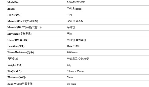 카시오 CASIO MW-59-7EVDF 공용 시계