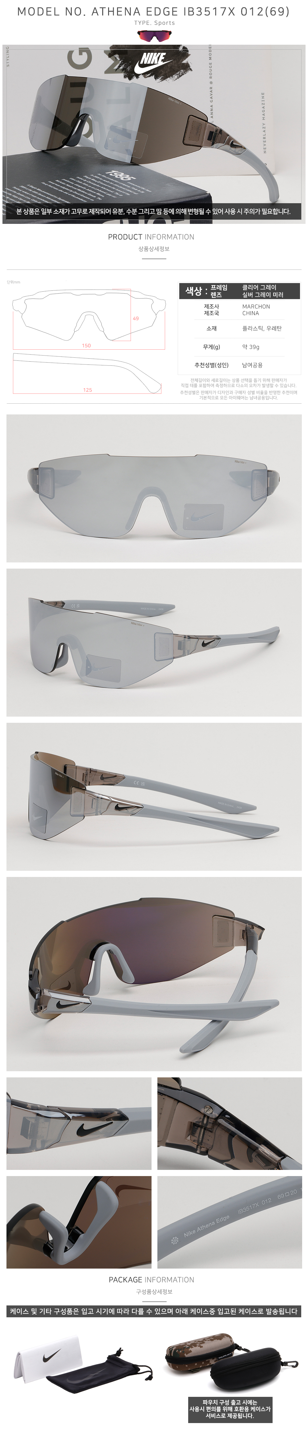 아테나 엣지 스포츠 선글라스 실버 그레이 미러 자전거 러닝 바이크 IB3517X 012