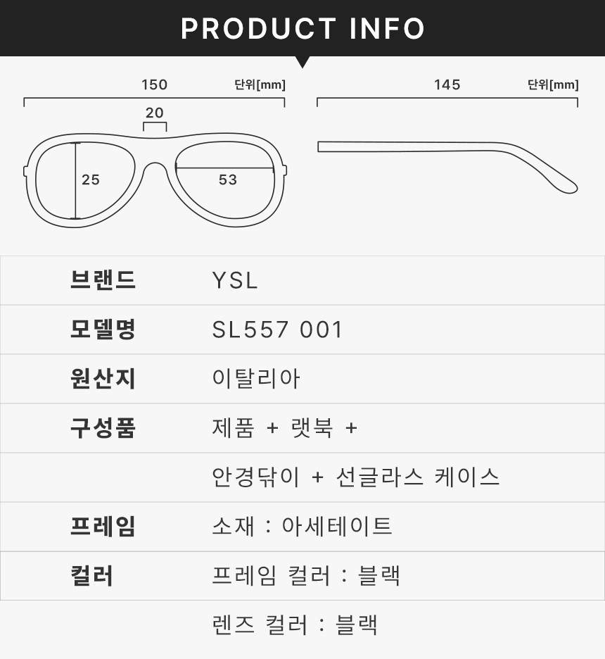 여성 캣아이 선글라스 SL557 001 쉐이드 블랙