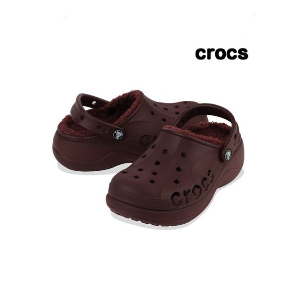 {매장정품} 크록스 CROCS 키즈 바야 플랫폼 라인드 클로그 털슬리퍼 버건디 208708-605K 965412