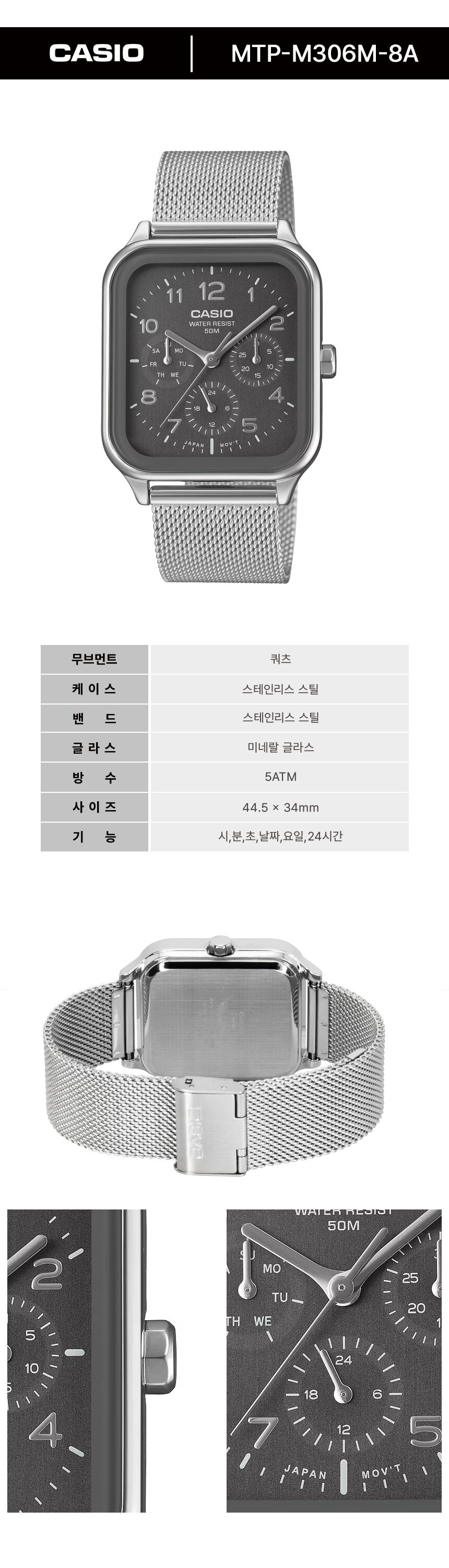 카시오 메탈 손목 시계 스퀘어 멀티펑션 MTP-M306M-8A