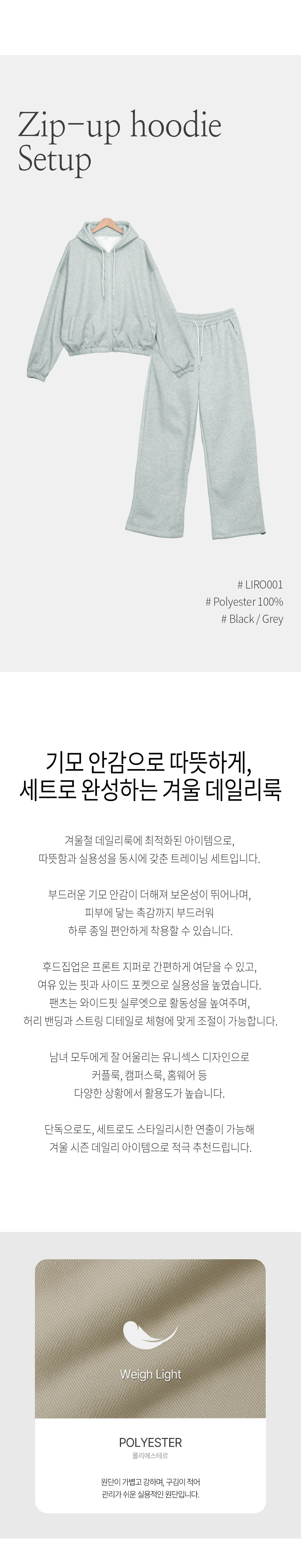 여자 겨울 남여공용 기모 후드집업 트레이닝 세트 LIRO001_P412134629