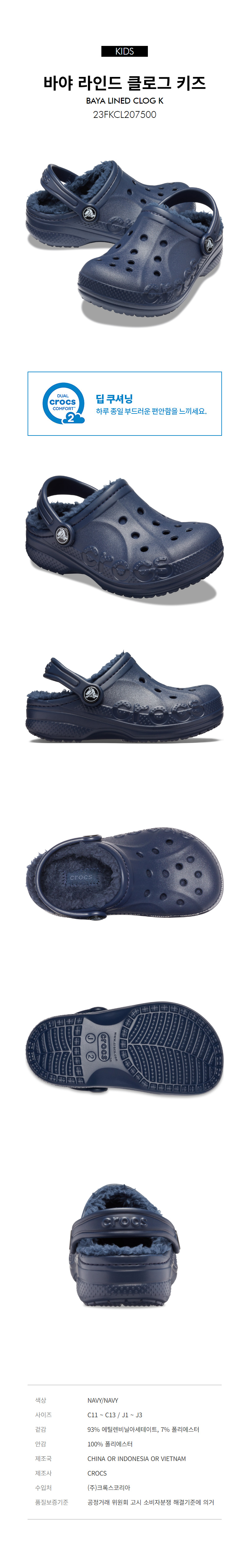 {매장정품} 크록스 CROCS 정상가 69900원공식 키즈 바야 라인드털 클로그 NAVY 23FKCL207500 96