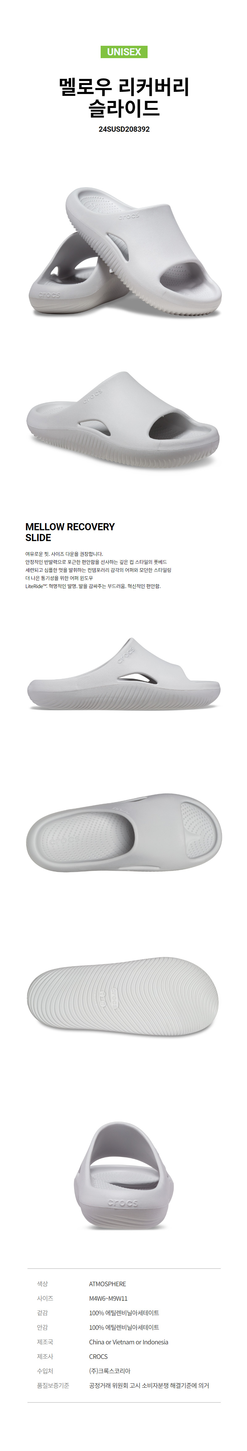 {매장정품} 크록스 CROCS 정상가 64900원공식 성인 멜로우 리커버리 슬라이드 AT 24SUSD208392