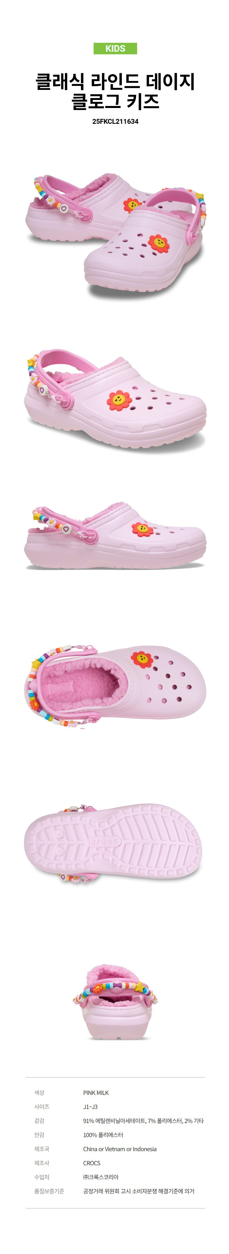 {매장정품} 크록스 CROCS 정상가 79900원공식 키즈 클래식 라인드털 데이지 클로그 PKM 25FKCL2