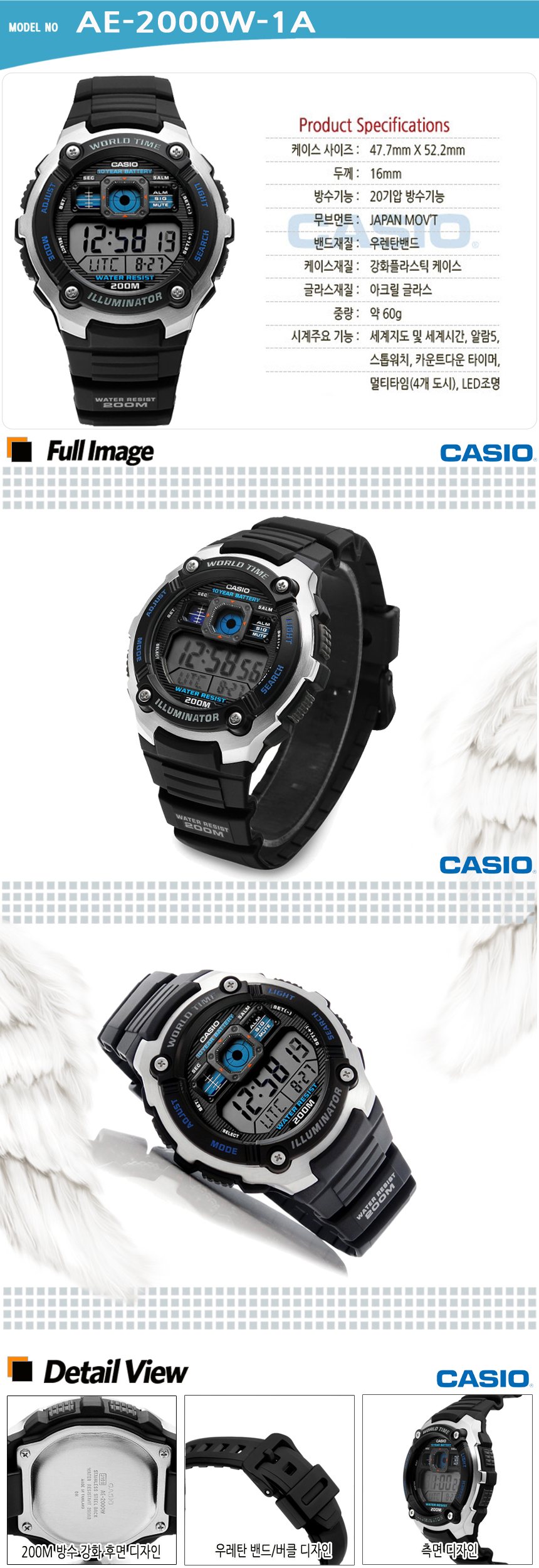 카시오 200M 방수 멀티타임 손목시계 AE-2000W-1A