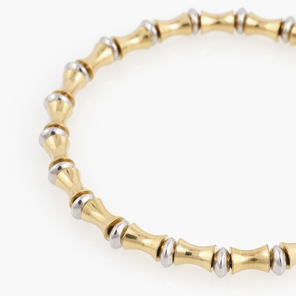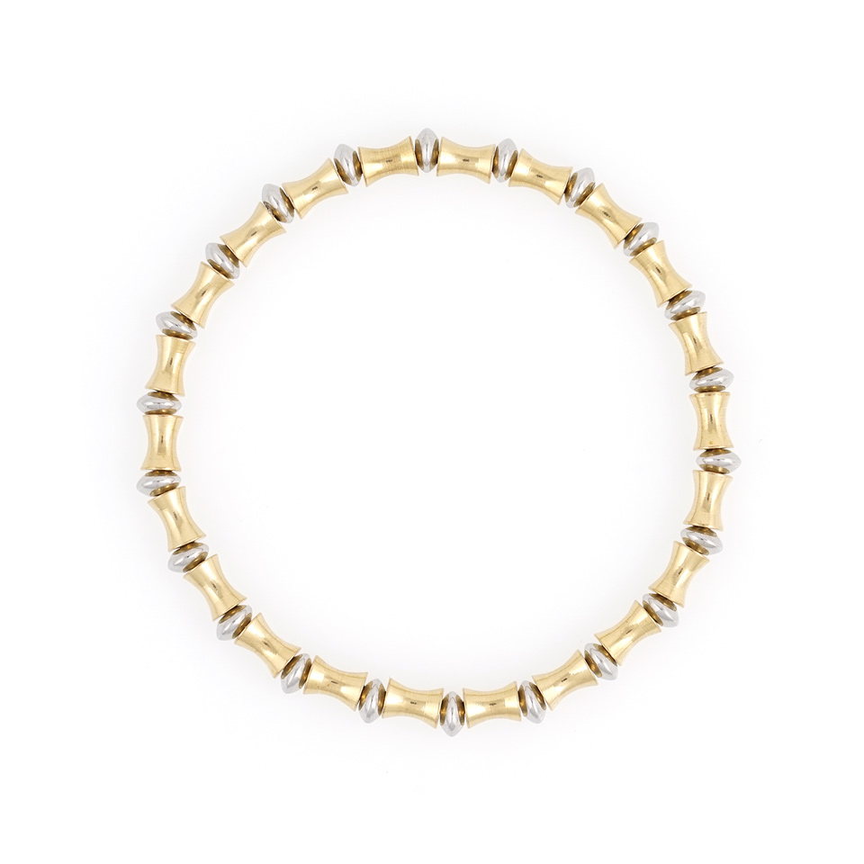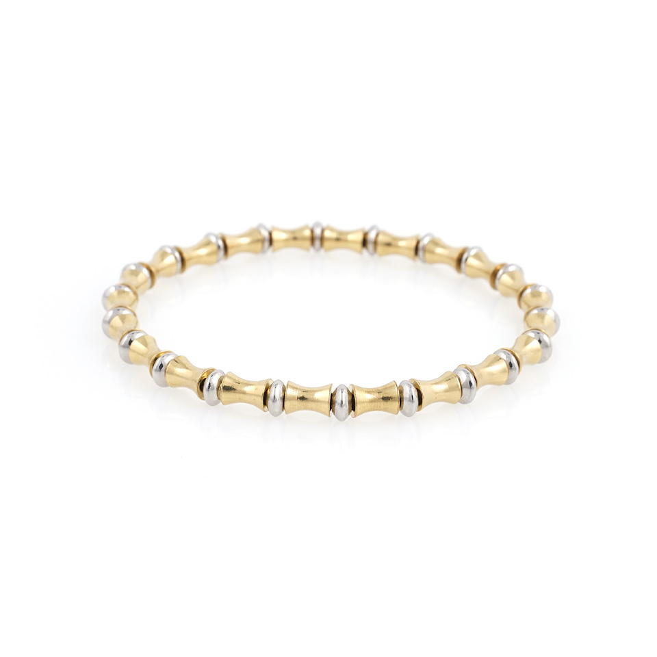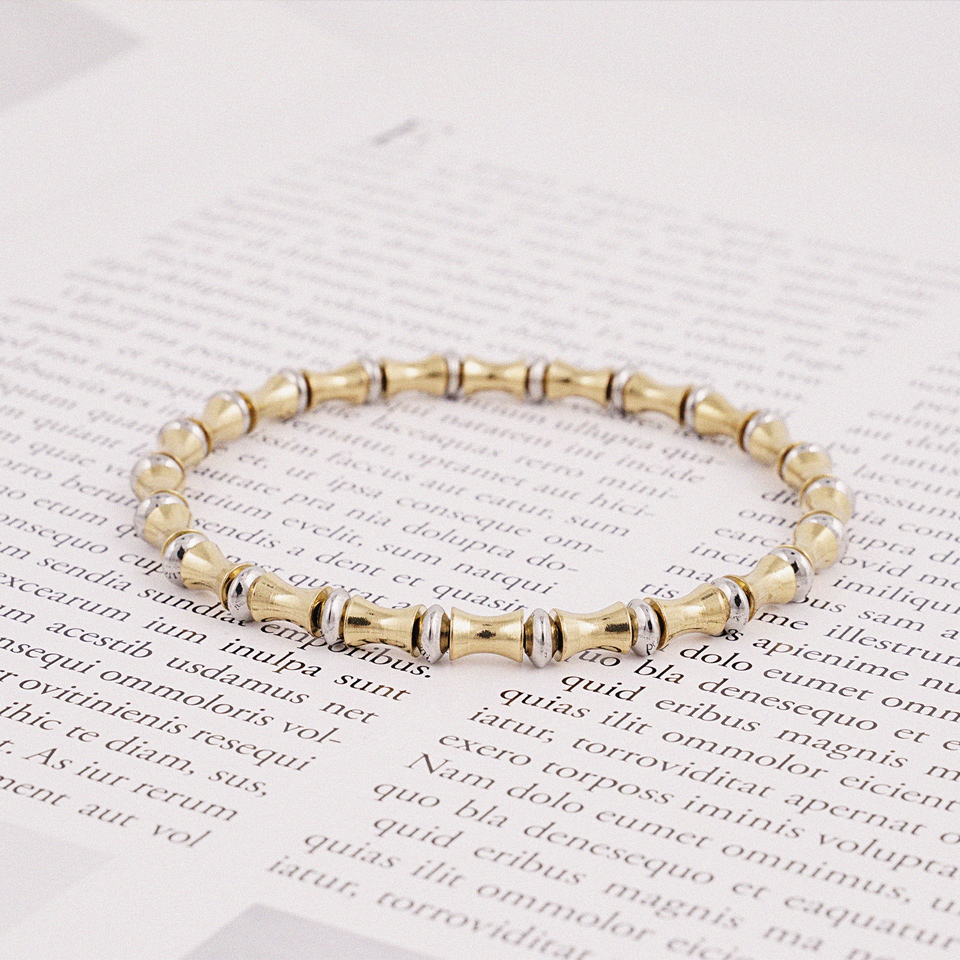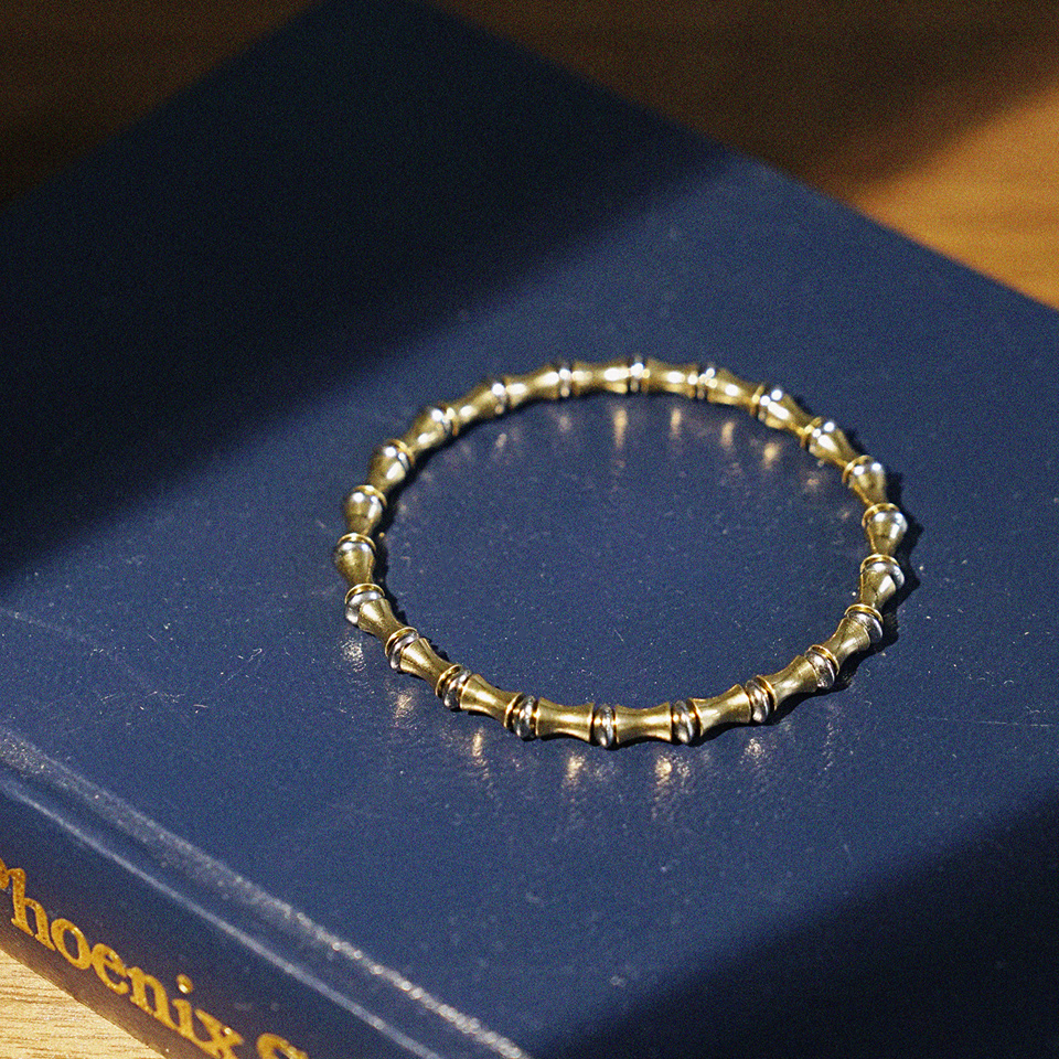 굴곡진 형태의 유니크한 실린더장식과 원반장식이 잘 어우러져 멋스러운 컬러감을 이루고 손목 착용시 자연스러운 라인감을 느낄 수 있도록 디자인되었습니다.