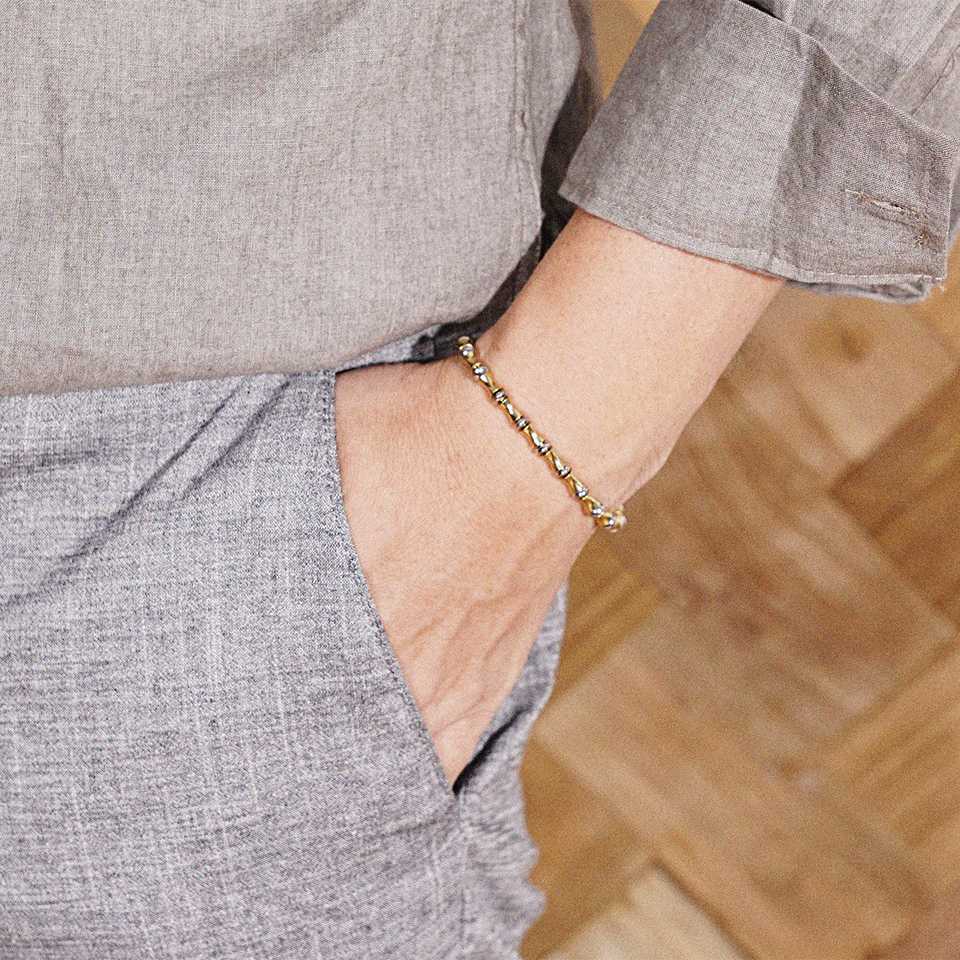Product info Comment 동으로 제작된 장식과 써지컬스틸로 제작된 장식믹스해서 만든 팔찌입니다.