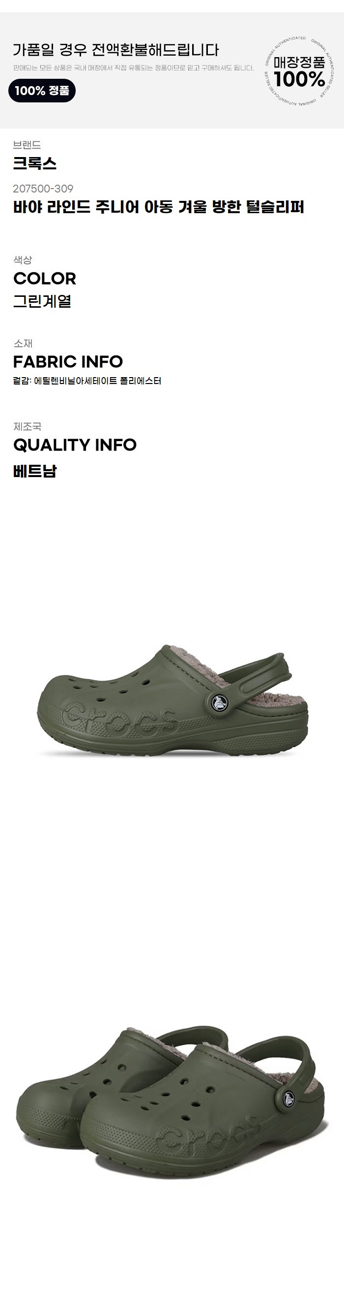 {매장정품} 크록스 CROCS 키즈슬리퍼 샌들 NQS 207500-309 바야 라인드 주니어 아동 겨울 방한 털슬리퍼 965354