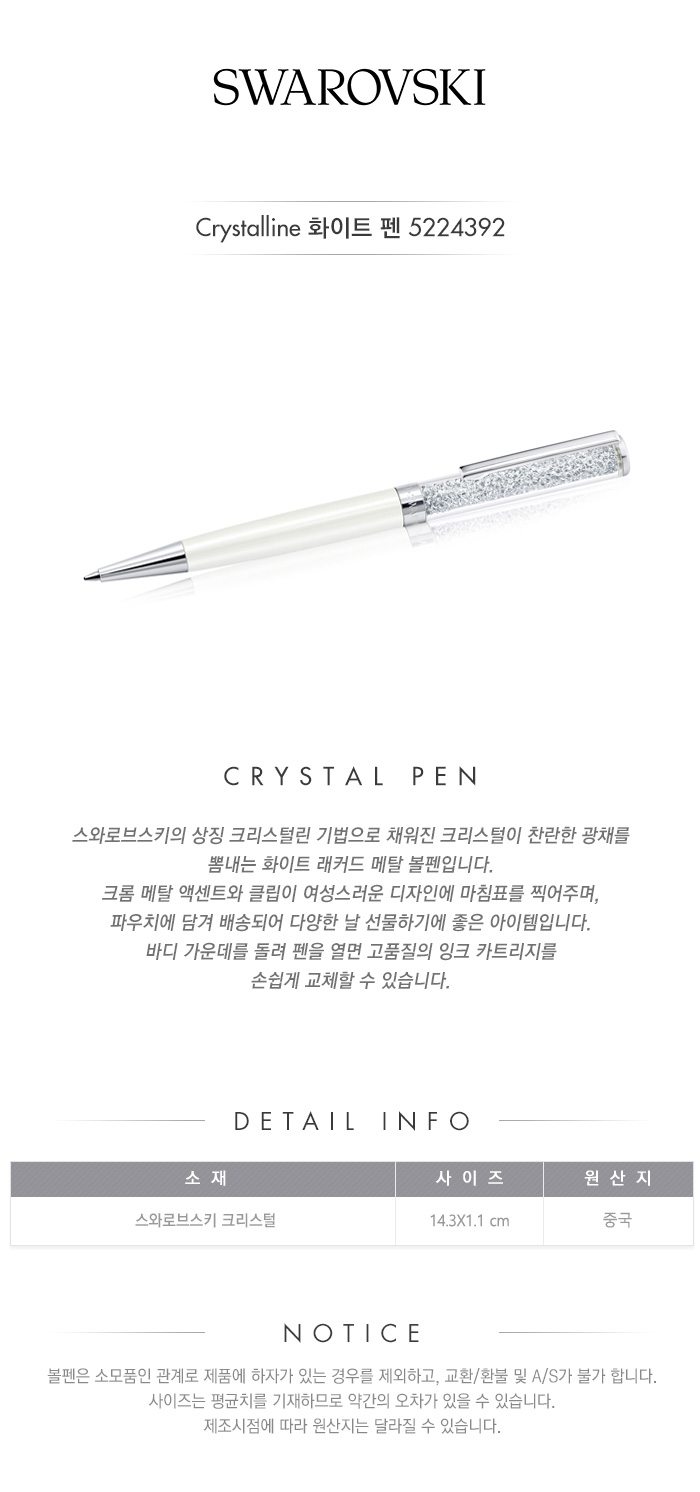 [스와로브스키/본사정품] Crystalline 화이트 펜 5224392