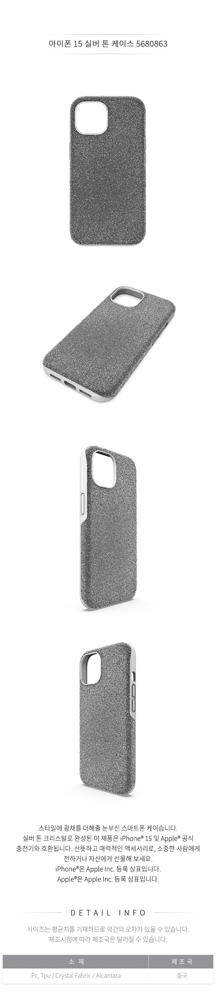 (현대백화점)스와로브스키/본사정품 아이폰 15 실버 톤 케이스 5680863
