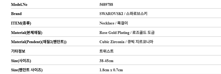 5689788 스와로브스키 SWAROVSKI 여성 목걸이