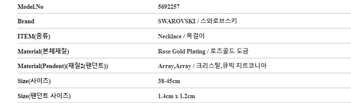 5692257 스와로브스키 SWAROVSKI 여성 목걸이