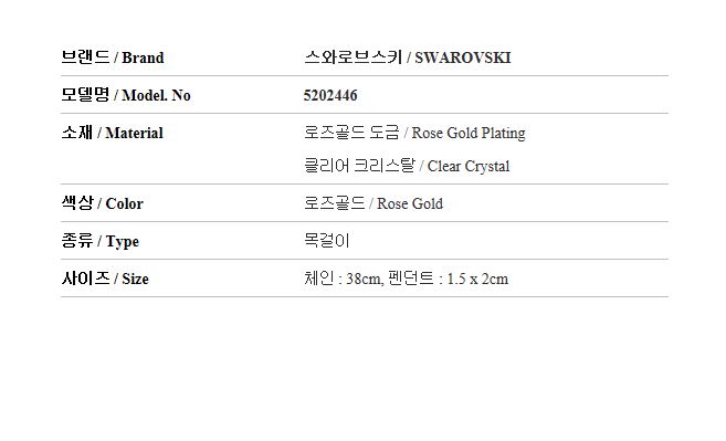 5202446 스와로브스키 SWAROVSKI 여성 목걸이
