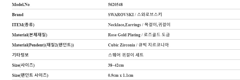 5620548 스와로브스키 SWAROVSKI 여성 목걸이 귀걸이 세트