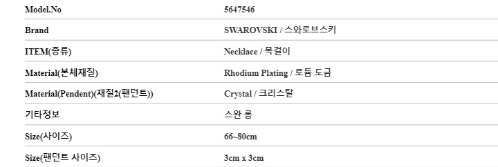 5647546 스와로브스키 SWAROVSKI 여성 목걸이