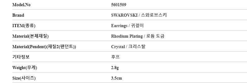 5601509 스와로브스키 SWAROVSKI 여성 귀걸이