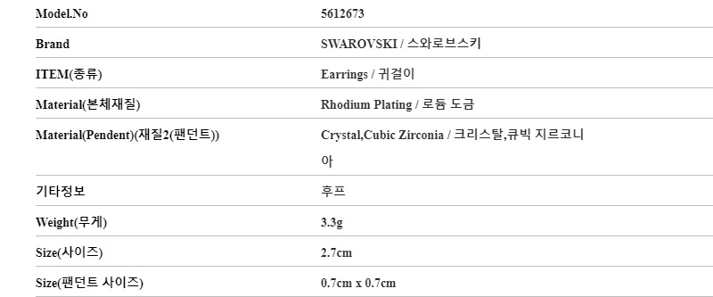 5612673 스와로브스키 SWAROVSKI 여성 귀걸이