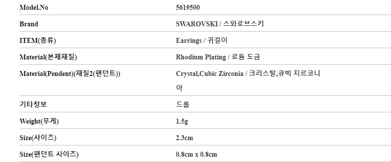 5619500 스와로브스키 SWAROVSKI 여성 귀걸이