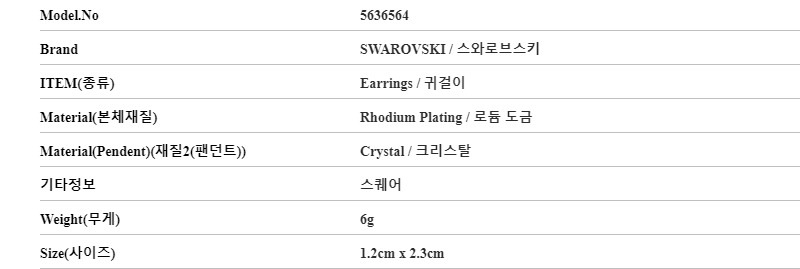 5636564 스와로브스키 SWAROVSKI 여성 귀걸이