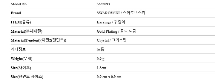 5662093 스와로브스키 SWAROVSKI 여성 귀걸이