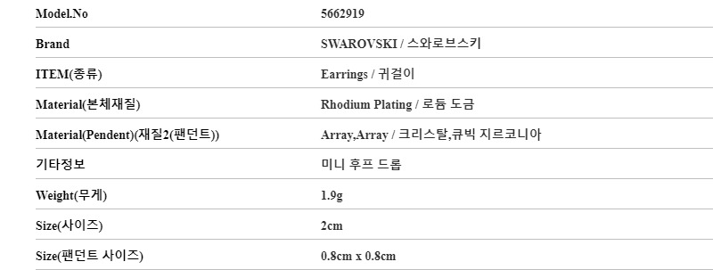 5662919 스와로브스키 SWAROVSKI 여성 귀걸이
