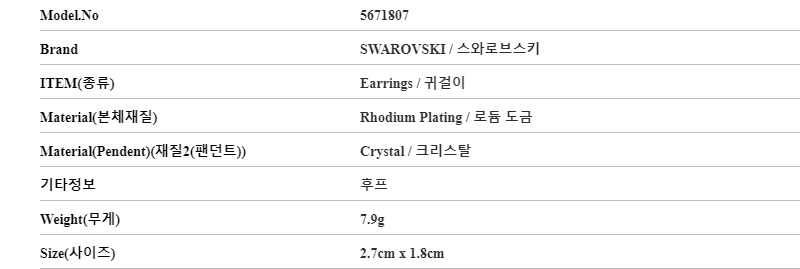 5671807 스와로브스키 SWAROVSKI 여성 귀걸이